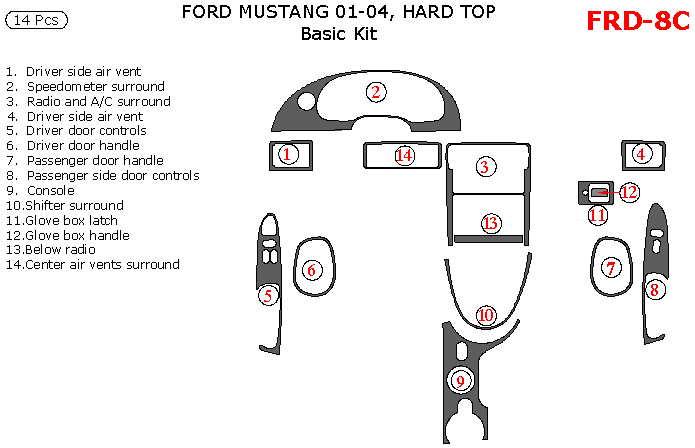 Ford Mustang 2001, 2002, 2003, 2004, Hard Top, Basic Interior Kit, 14 Pcs.
