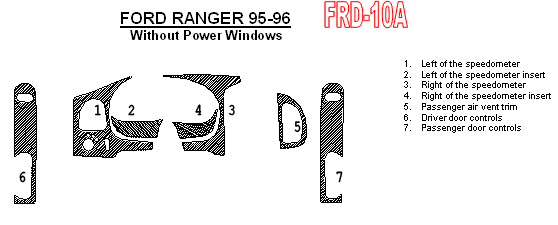 Ford Ranger 1995-1996, Full Interior Kit, 7 Pcs.