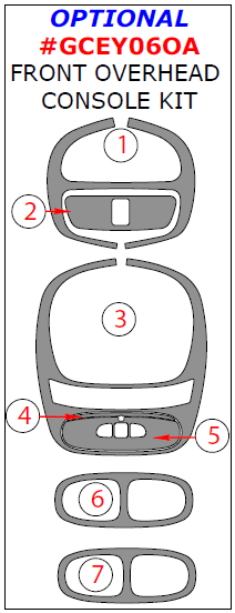 We offer a wide variety of colors and materials of GMC Envoy / Saab 9-7X 2006, 2007, 2008, 2009 / Isuzu Ascender 2006, 2007, 2008, Optional Front Overhead Console Interior Kit, 7 Pcs. Choose your favourite option and place an order.