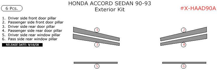 Honda Accord 1990, 1991, 1992, 1993, Exterior Kit (Sedan Only), 6 Pcs.