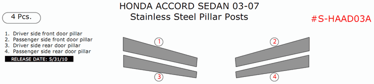 Honda Accord Sedan 2003, 2004, 2005, 2006, 2007, Stainless Steel Pillar Posts, 4 Pcs.