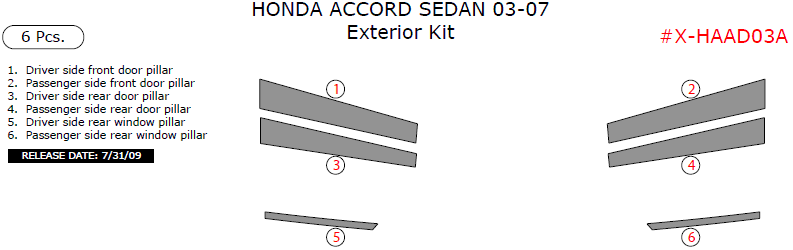 Honda Accord 2003, 2004, 2005, 2006, 2007, Exterior Kit (Sedan Only), 6 Pcs.
