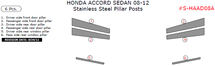 Honda Accord Sedan 2008, 2009, 2010, 2011, 2012, Stainless Steel Pillar Posts, 6 Pcs.