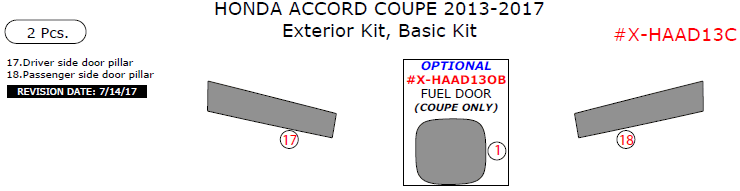Honda Accord Coupe 2013, 2014, 2015, 2016, 2017, Basic Exterior Kit, 2 Pcs.