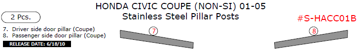 Honda Civic Coupe (Non-SI) 2001, 2002, 2003, 2004, 2005, Stainless Steel Pillar Posts, 2 Pcs.