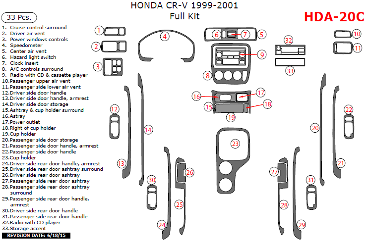 Honda CR-V 1999, 2000, 2001, Full Interior Kit, 33 Pcs.
