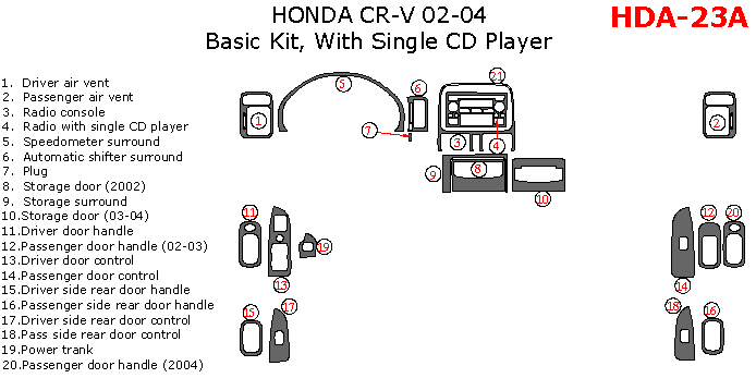 Honda CR-V 2002, 2003, 2004, Basic Interior Kit, With Single CD Player, 19 Pcs.