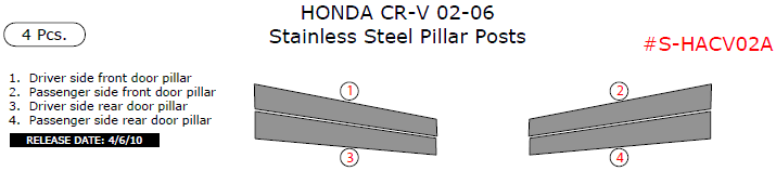 Honda CR-V 2002, 2003, 2004, 2005, 2006, Stainless Steel Pillar Posts, 4 Pcs.