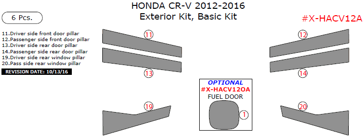 Honda CR-V 2012, 2013, 2014, 2015, 2016, Basic Exterior Kit, 6 Pcs.