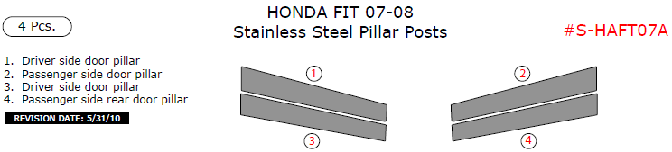 Honda Fit 2007-2008, Stainless Steel Pillar Posts, 4 Pcs.