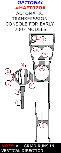 Honda Fit 2007-2008, Interior Dash Kit, Optional Automatic Transmission Console For Early 2007 Models, 11 Pcs.