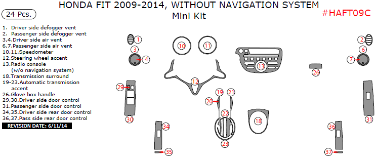 Honda Fit 2009, 2010, 2011, 2012, 2013, 2014, Without Navigation System, Mini Interior Kit, 24 Pcs.