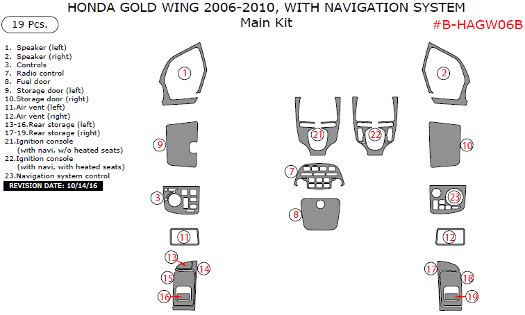 Honda Gold Wing 2006, 2007, 2008, 2009, 2010, With Navigation System, Main Kit, 19 Pcs.