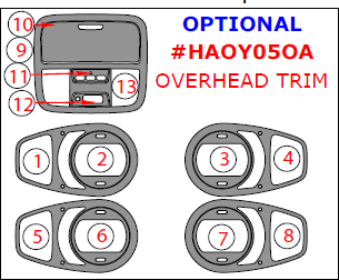 Honda Odyssey 2005, 2006, 2007, 2008, 2009, 2010, Optional Overhead Interior Trim Kit, 13 Pcs.