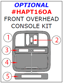 Honda Pilot 2016, 2017, 2018, Optional Front Overhead Console Interior Kit, 5 Pcs.