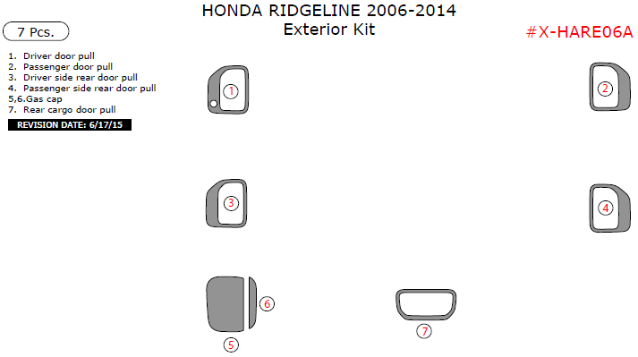 Honda Ridgeline 2006, 2007, 2008, 2009, 2010, 2011, 2012, 2013, 2014, Exterior Kit, 7 Pcs.