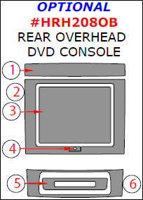 Hummer H2 2008-2009, Optional Rear Overhead DVD Console Interior Kit, 6 Pcs.