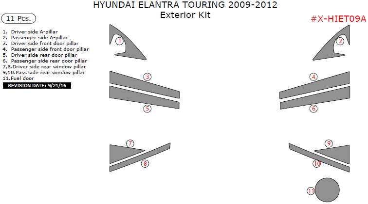 Hyundai Elantra Touring 2009, 2010, 2011, 2012, Exterior Kit, 11 Pcs.