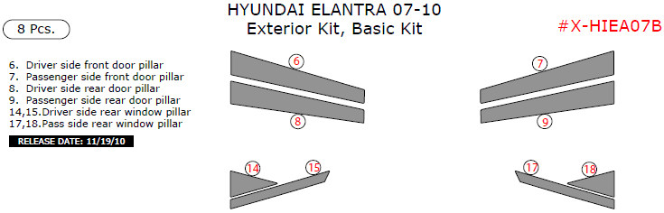 Hyundai Elantra 2007, 2008, 2009, 2010, Basic Exterior Kit, 8 Pcs.