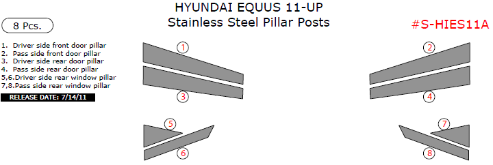 We offer a wide variety of colors and materials of Hyundai Equus 2011, 2012, 2013, 2014, 2015, Stainless Steel Pillar Posts, 8 Pcs. Choose your favourite option and place an order.