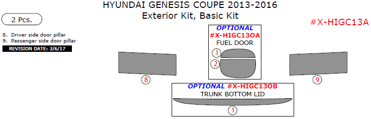 Hyundai Genesis Coupe 2013, 2014, 2015, 2016, Basic Exterior Kit, 2 Pcs.