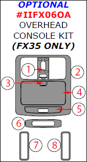 Infiniti FX 2006, 2007, 2008, Optional Overhead Console Interior Kit (FX35 Only), 8 Pcs.
