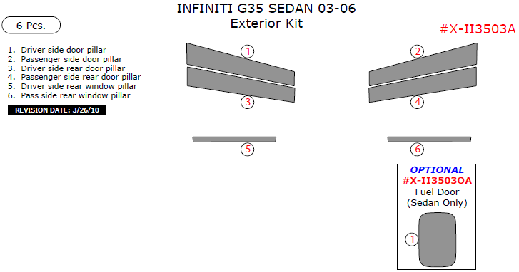 Infiniti G35 2003, Infiniti G35 2005-2006, Exterior Kit, 6 Pcs.