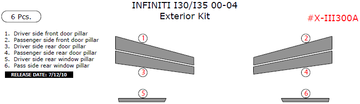 Infiniti I 2000, 2001, 2002, 2003, 2004, Exterior Kit, 6 Pcs.