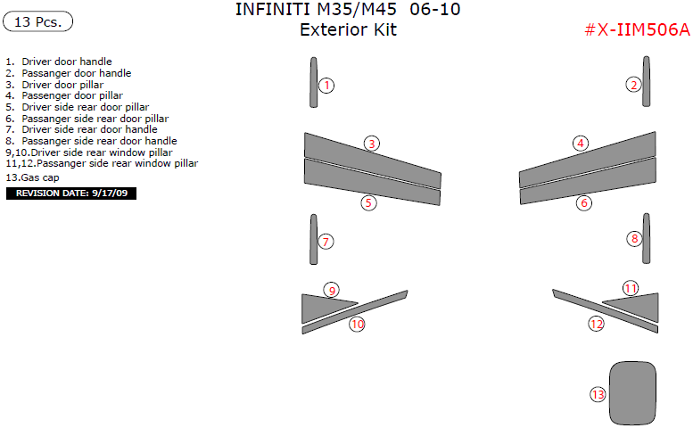 Infiniti M 2006, 2007, 2008, 2009, 2010, Exterior Kit, 13 Pcs.