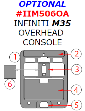 Infiniti M 2006, 2007, 2008, 2009, 2010, Optional Infiniti M35 Overhead Console Interior Kit, 6 Pcs.