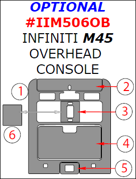 Infiniti M 2006, 2007, 2008, 2009, 2010, Optional Infiniti M45 Overhead Console Interior Kit, 6 Pcs.