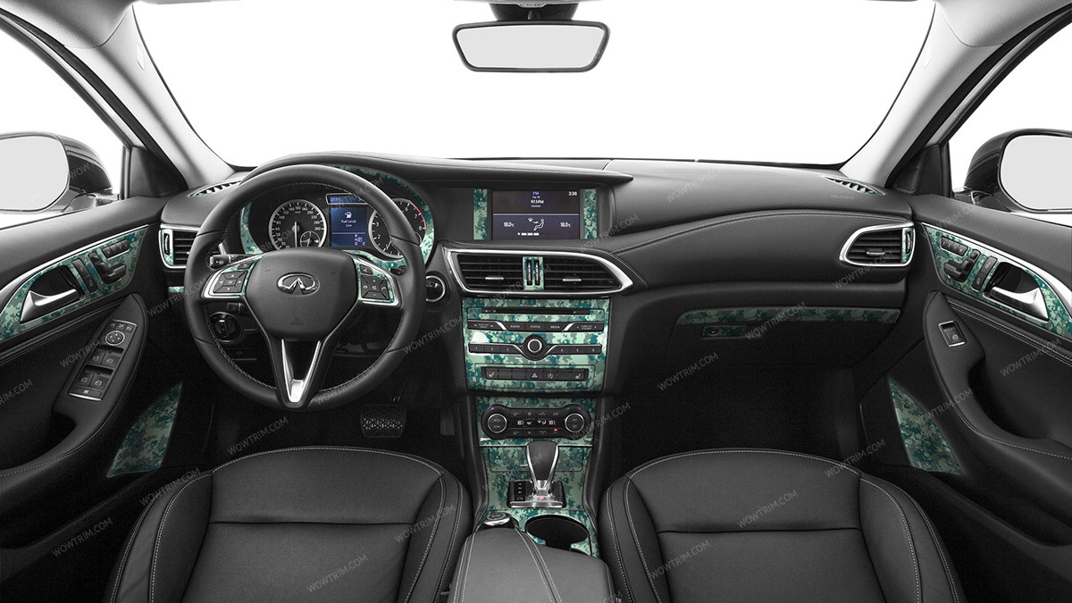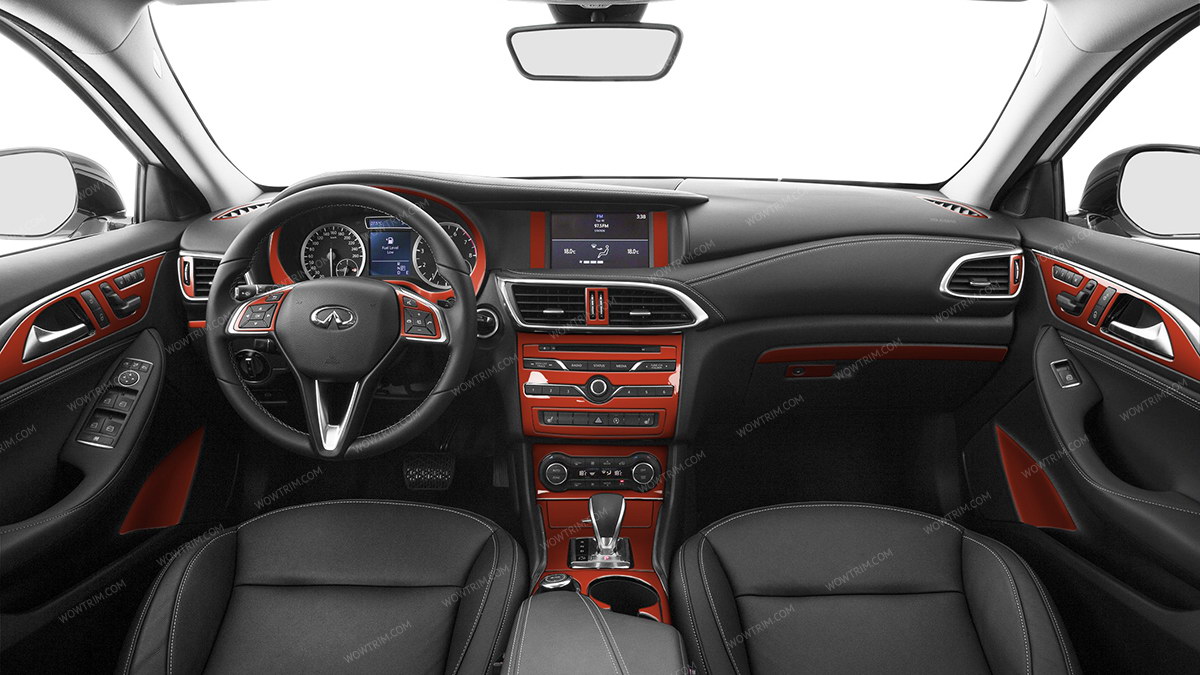 Full interior dash kit of 35 pieces for Infiniti QX30 2007-2019 is available in a variety of colors (black, red and so on) and materials (carbon fiber, wood, etc.). Choose your desired option of the 2017-2018 Infiniti QX30 interior accessory and buy the high-quality dash trim kit.