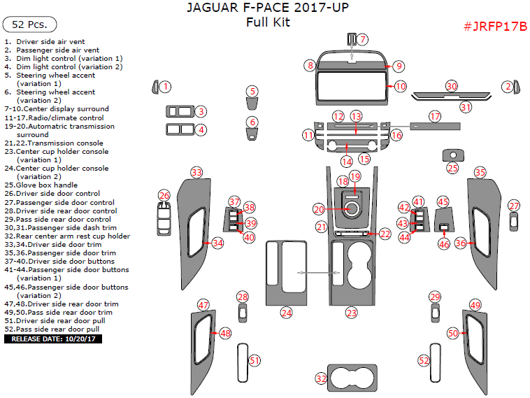 Jaguar F-Pace 2017-2020, Full Interior Kit, 52 Pcs.