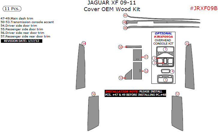 We offer a wide variety of colors and materials of Jaguar XF 2009, 2010, 2011, Cover OEM Wood Interior Kit, 11 Pcs. Choose your favourite option and place an order.