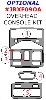 Jaguar XF 2009, 2010, 2011, Optional Overhead Console Interior Kit, 5 Pcs.