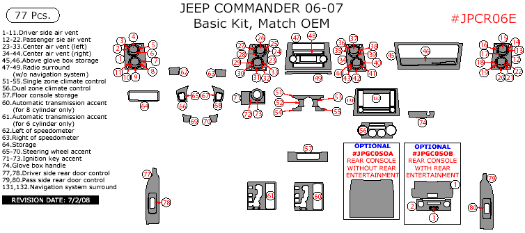 Jeep Commander 2006-2007, Match OEM, Basic Interior Kit, 77 Pcs., Match OEM