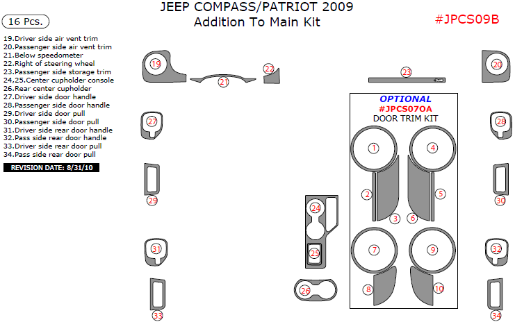 Jeep Compass/Patriot 2009, Addition To Main Interior Kit, 16 Pcs.