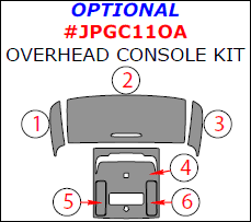 Jeep Grand Cherokee 2011, 2012, 2013, 2014, 2015, 2016, 2017, 2018, 2019, 2020, 2021 Optional Overhead Console Interior Kit, 6 Pcs.