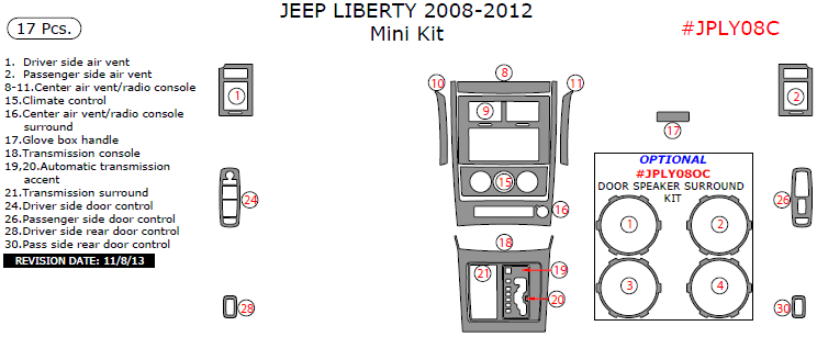Jeep Liberty 2008, 2009, 2010, 2011, 2012, Mini Interior Kit, 17 Pcs.