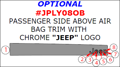 Jeep Liberty 2008, 2009, 2010, 2011, 2012, Interior Dash Kit, Optional Passenger Side Above Air Bag Trim With Chrome "Jeep" Logo, 8 Pcs.