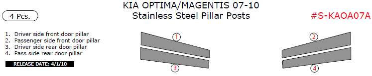 Kia Optima/Magentis 2007, 2008, 2009, 2010, Stainless Steel Pillar Posts, 4 Pcs.