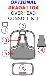 Kia Optima 2011, 2012, 2013, Optional Overhead Console Interior Kit, 6 Pcs.