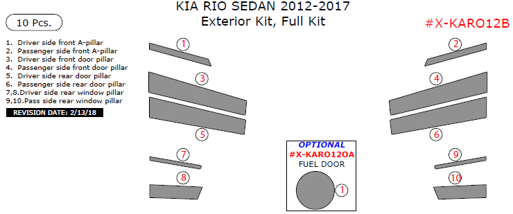 Kia Rio 2012, 2013, 2014, 2015, 2016, 2017, Exterior Kit, Full Kit (Sedan Only), 10 Pcs.