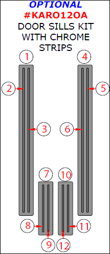 Kia Rio 2012, 2013, 2014, 2015, Door Sills Interior Kit With Chrome Strips, 12 Pcs.