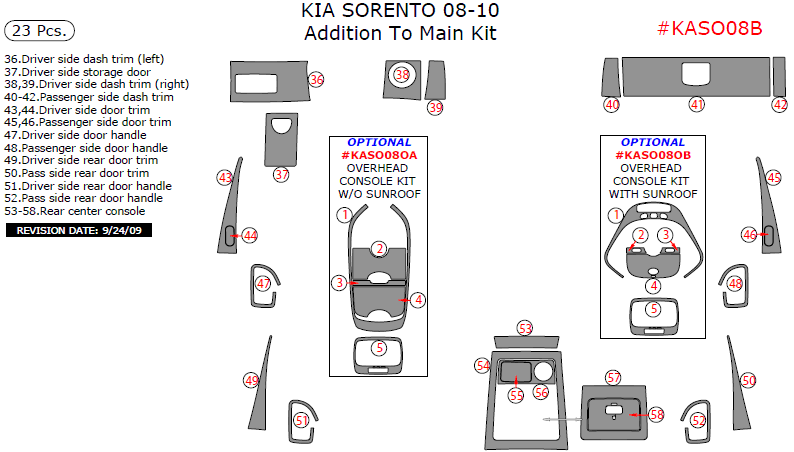 Kia Sorento 2008, 2009, 2010, Addition To Main Interior Kit, 23 Pcs.