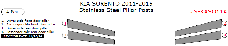 Kia Sorento 2011, 2012, 2013, 2014, 2015, Stainless Steel Pillar Posts, 4 Pcs.
