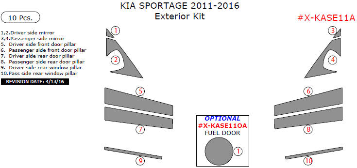 Kia Sportage 2011, 2012, 2013, 2014, 2015, 2016, Exterior Kit, 10 Pcs.