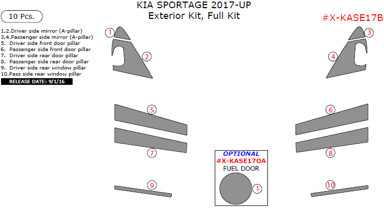 Kia Sportage 2017-2019, Exterior Kit, Full Interior Kit, 10 Pcs.