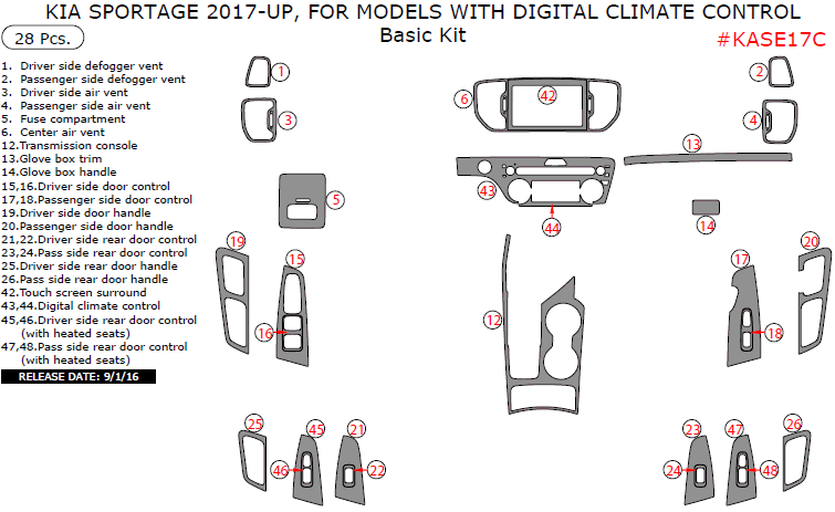Kia Sportage 2017-2019, For Models With Digital Climate Control, Basic Interior Kit, 28 Pcs.