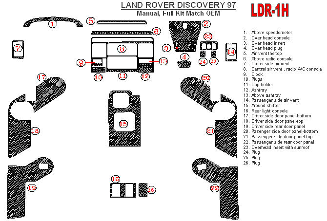 Land Rover Discovery 1995, 1996, 1997, 1998, Manual, Full Interior Kit, Match OEM 1997 Only, 26 Pcs.